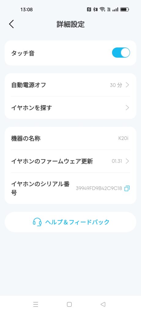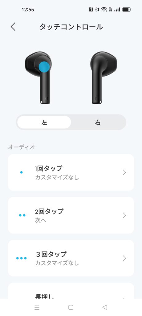 ・サウンドエフェクト(イコライザー&プリンセット) ・コントロール ・ゲームモード | ・タッチ音 ・自動電源オフ ・イヤホンを探す |