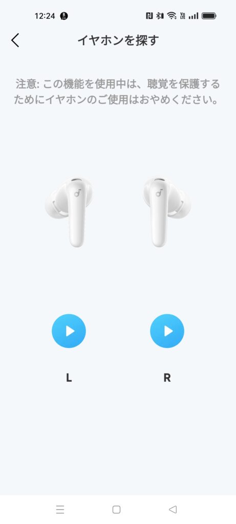 音量が徐々に大きくなるタイプのイヤホンを探す機能。Bluetoothに接続できていないと使用できないので注意してください。