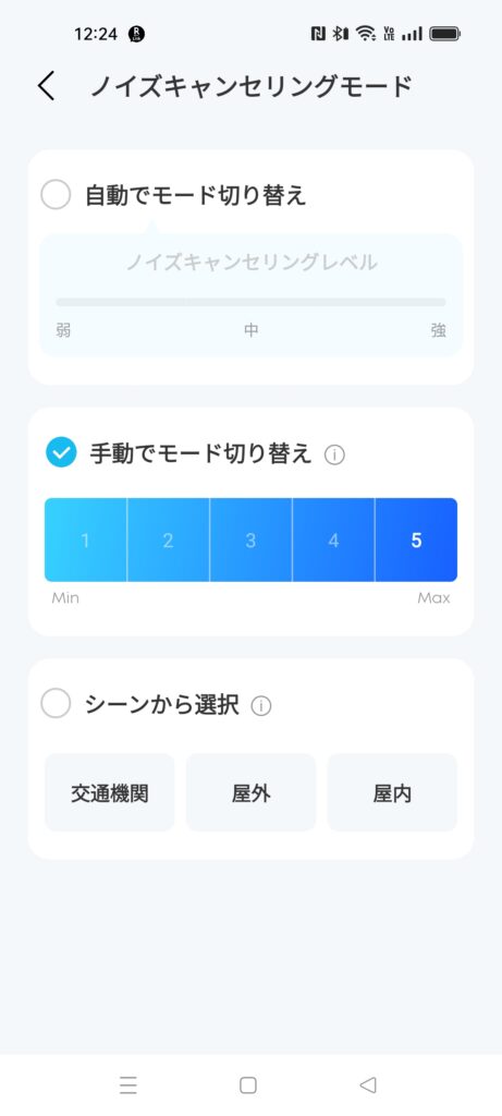・ノイズキャンセリングの「自動・手動・シーン別」の変更