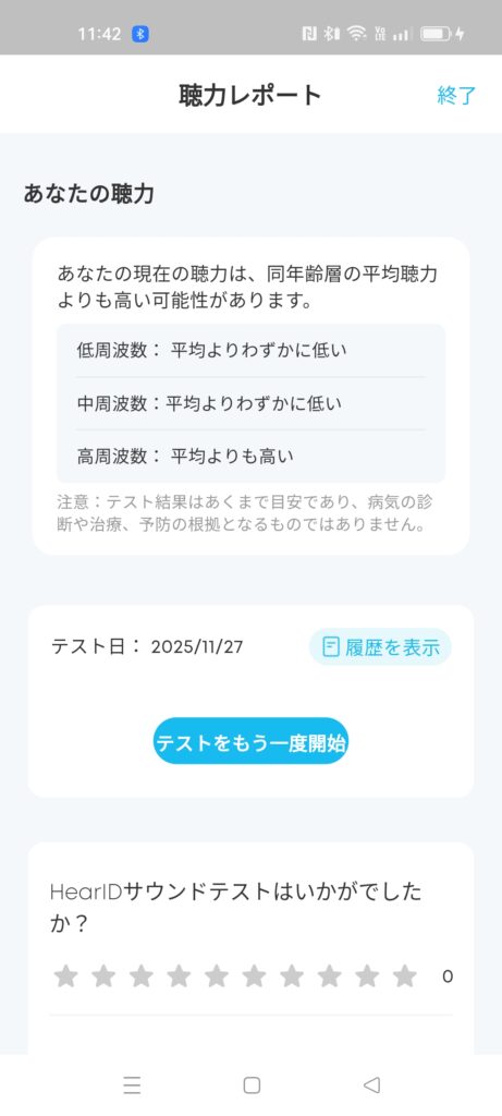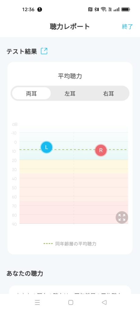 上記の画像のように現在の聴力がどのようなものか簡易的に診断してくれます。