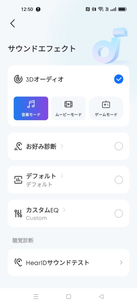 お好み診断は他のメーカにも似たような機能があるため詳しく説明しませんが、使用すると好みの音質に調整してくれます。