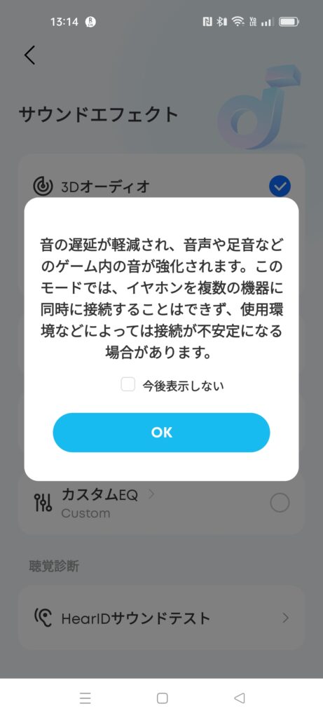 「HearlDサウンドテスト」を使う時に登録していない場合は表示が出るので使う場合は登録しておきましょう。