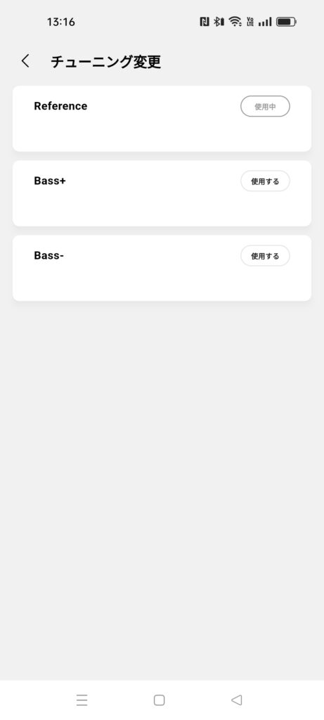画像のように3つの音質から変更できます。他のメーカーだとプリンセットって感じ。
