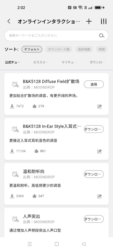 ちなみに自分自身がチューニングした音質もアップロードできますがその場合はユーザー登録をしないといけません。