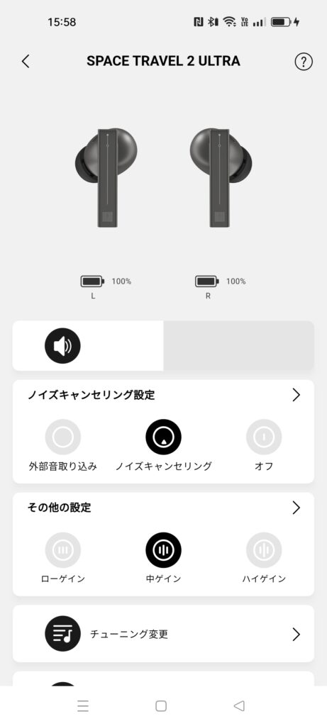 ノイズキャンセリング&外音取り込み機能もイヤホン本体長押し3秒以上で変更できるようになっています。