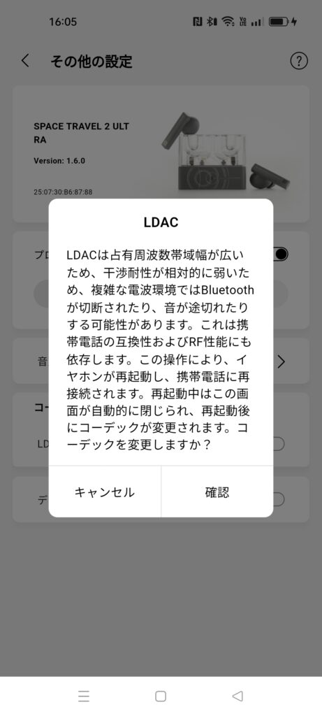 このモデルに搭載されたLDACを使用すると解像度は1段上になります。全体的に音の角の荒さ無くなりスムーズな音の流れで音楽が聴けます。