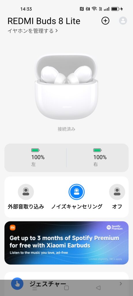 | アプリ | 「Xiaomi Earbuds」 |